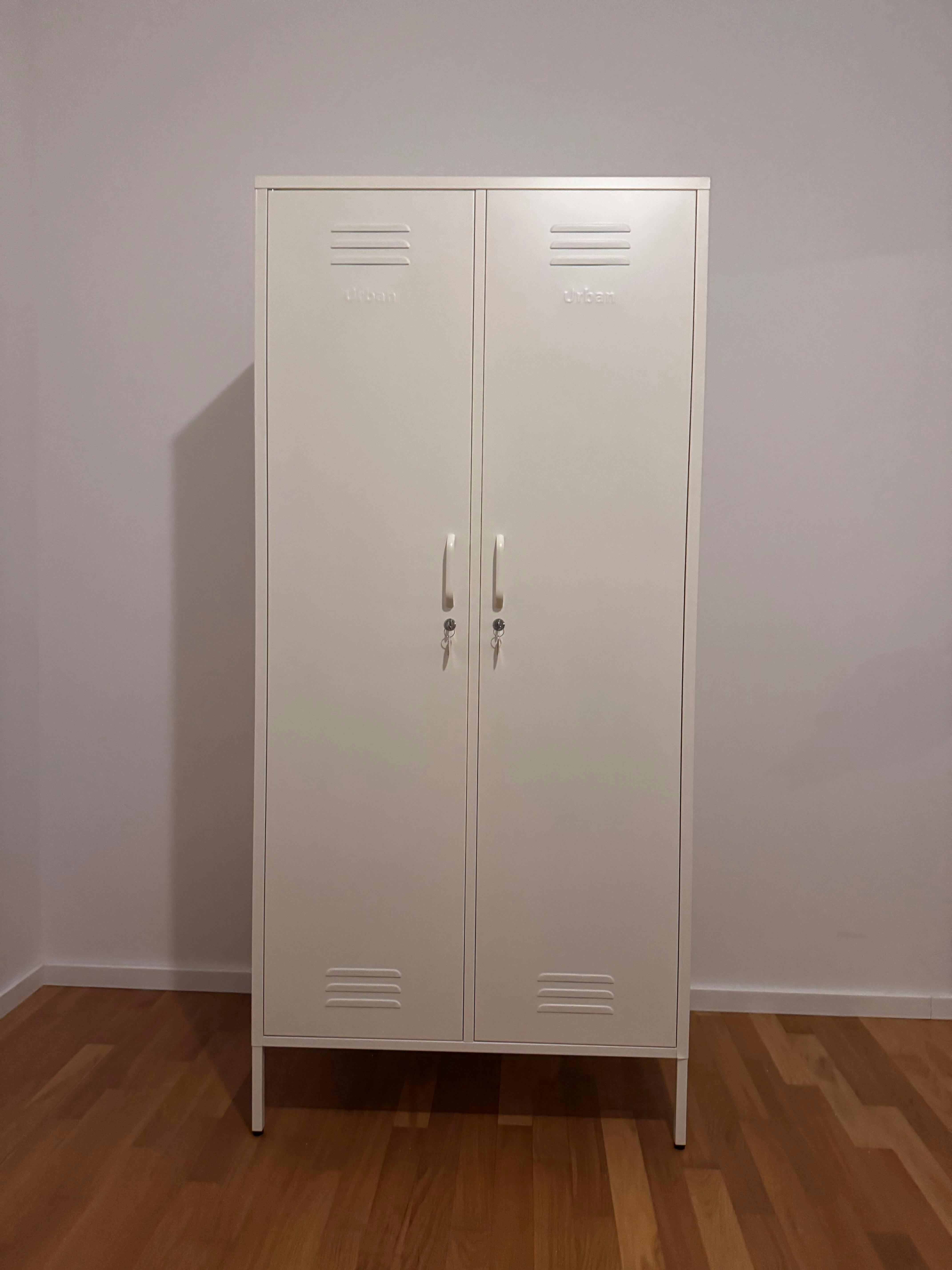 received the red metal wardrobe from you in good condition. It's now in my bedroom as a wardrobe for my clothes. The wardrobe perfectly suits the style of my bedroom. In short, I'm happy with my purchase. I also appreciate that there's a video on your website showing how to assemble the wardrobe.