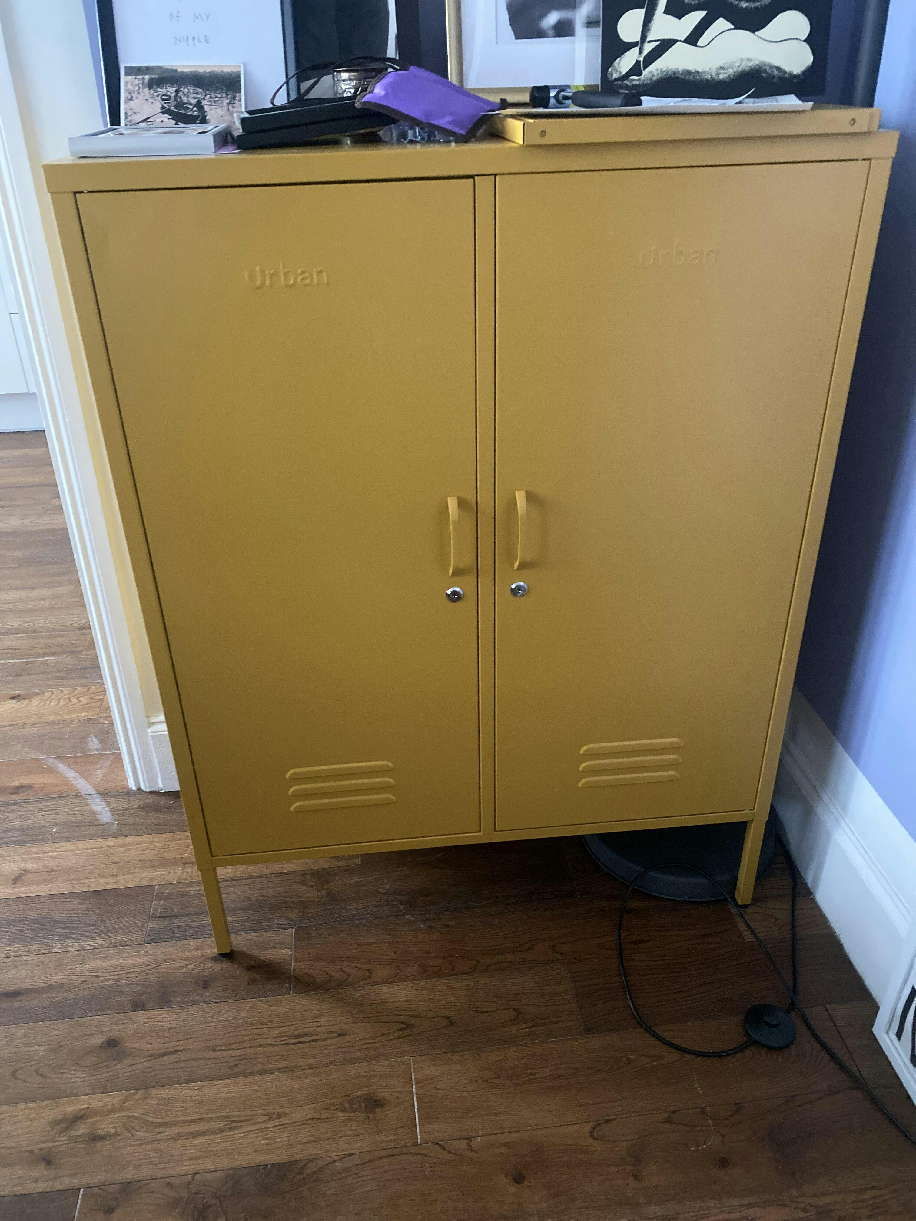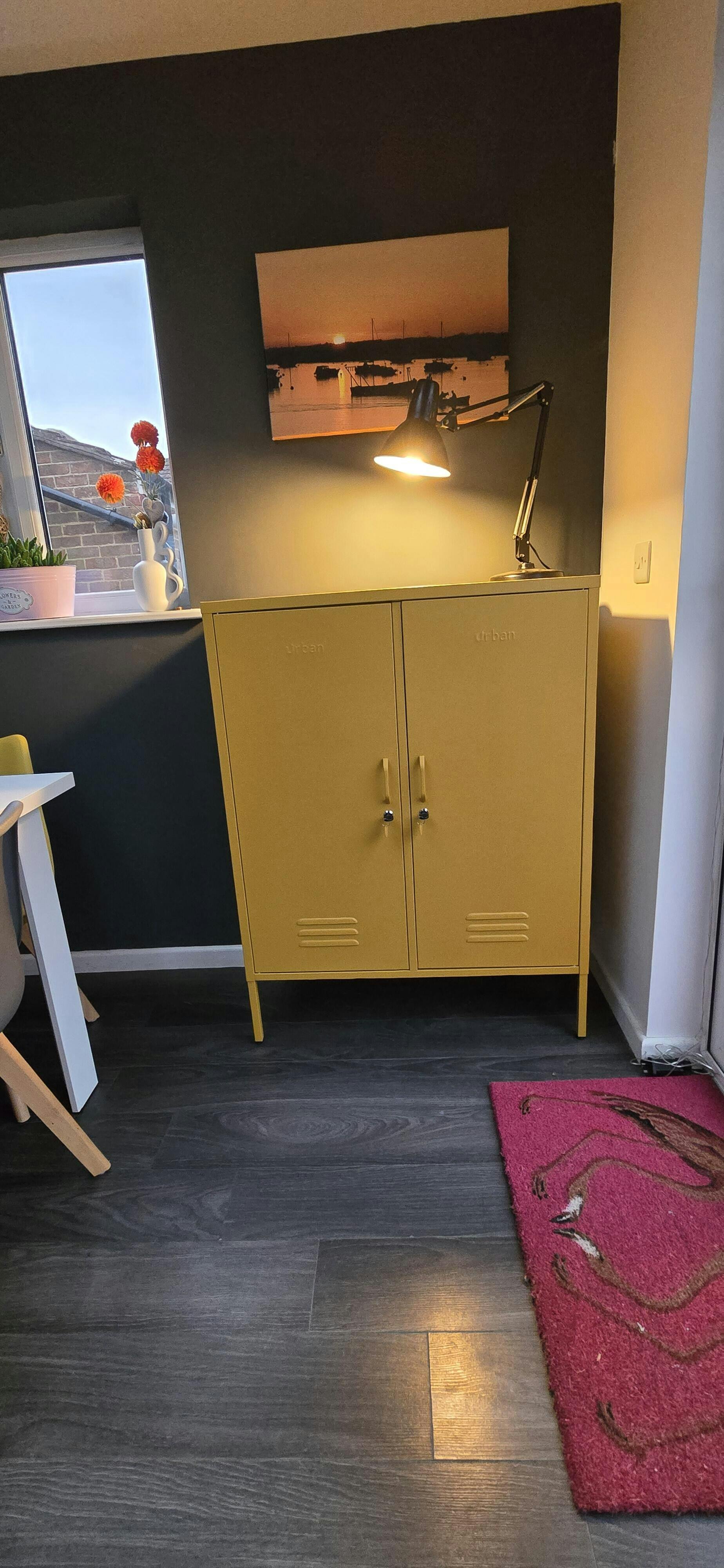 Brighten up your room with the vibrant Mustard Fulham locker. This two-door metal locker is bold and practical, offering plenty of space to store anything from clothes to household essentials. The lockable doors ensure your belongings stay secure, while adjustable shelves let you personalise the interior to fit your needs. Packed with features like a magnetic surface, handy hooks, wall mounting holes, and adjustable feet, this Mustard locker is as versatile as it is stylish. Whether used as a bedroom locker or office locker, The Mustard Fulham storage locker is perfect for bringing a pop of colour to your home.