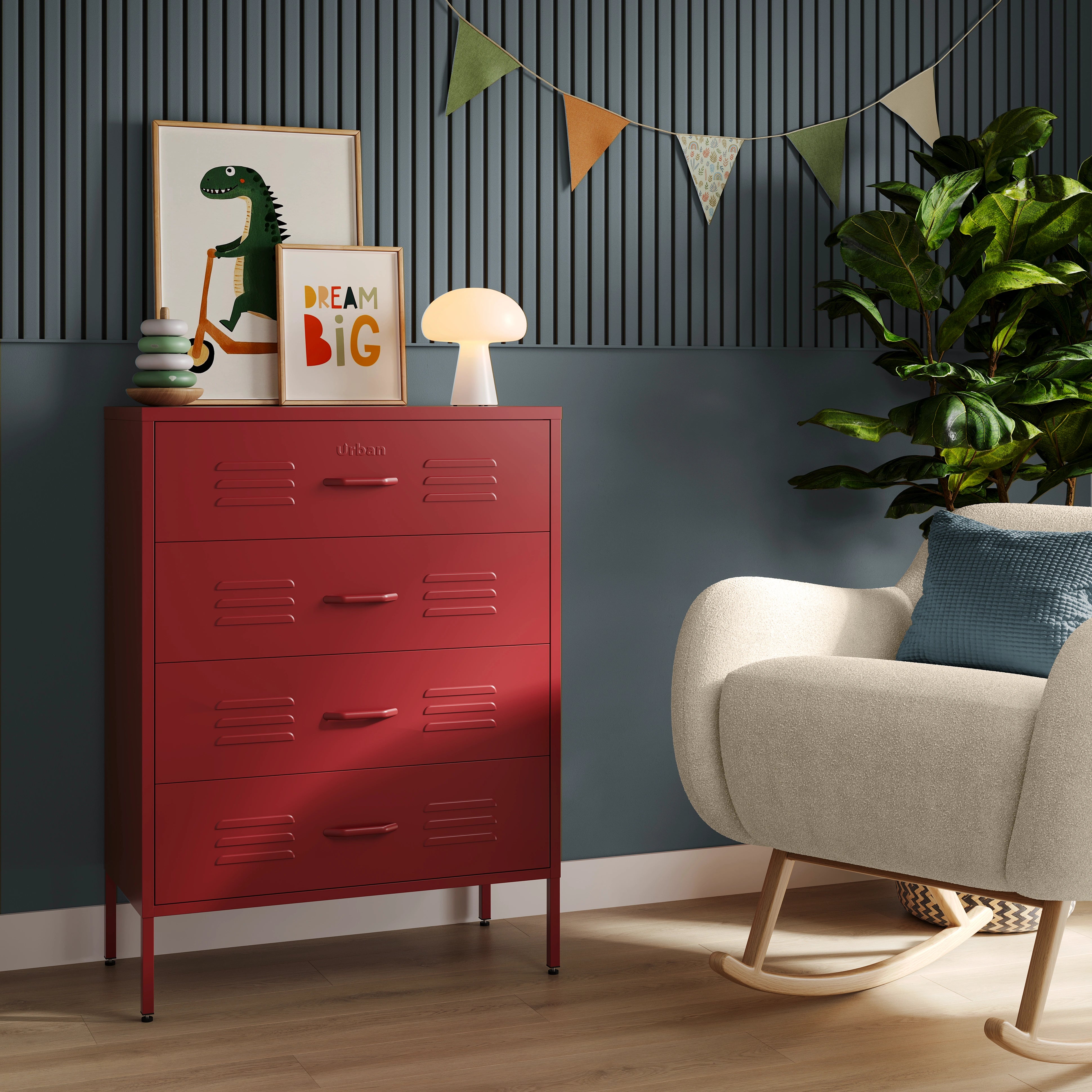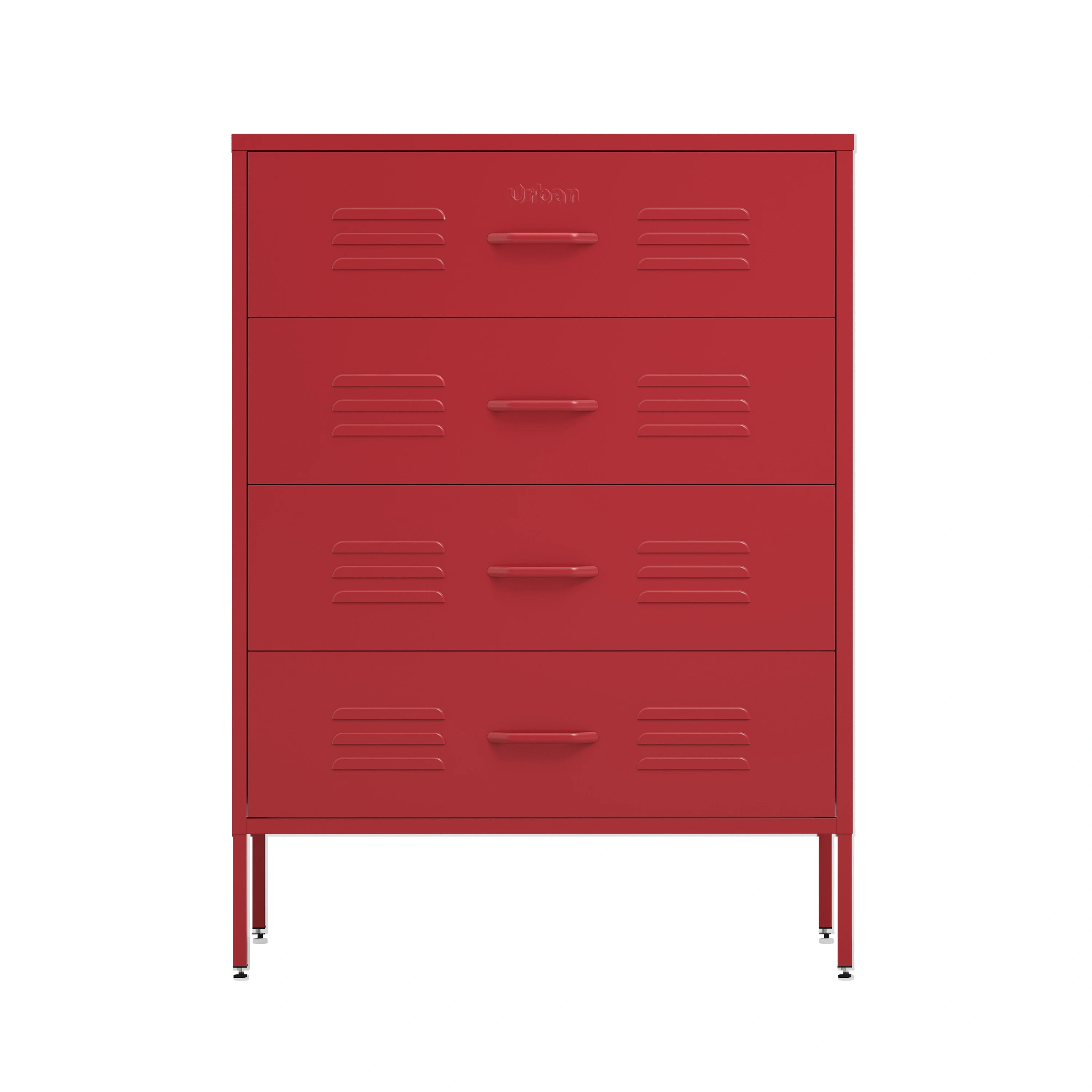 The Red Harrow metal drawer locker combines a fresh, pastel tone with practical storage. This four-drawer locker is perfect for keeping clothes, linens, or everyday essentials neatly tucked away, while the smooth-gliding metal drawers offer effortless access. Locker drawer vents promote airflow, keeping stored items fresh, while adjustable feet and wall-mounting holes provide stability and flexibility. Whether styled as a modern bedroom drawer locker or a sleek office storage unit, this red locker adds a touch of charm to any space.
