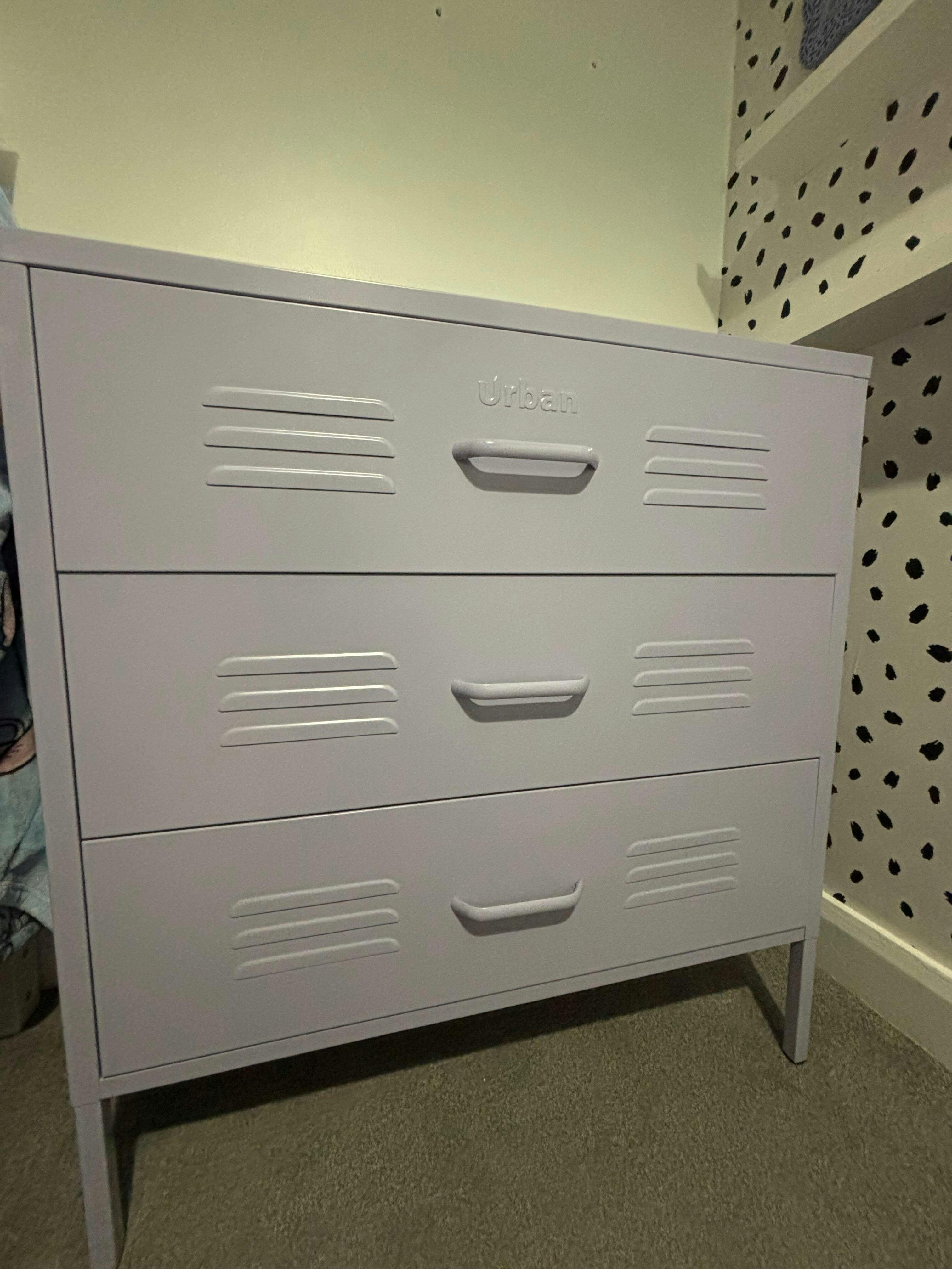 Create a fresh and organised look with the Lambeth locker. This metal three-drawer locker offers ample storage space and a soft pastel tone that brightens any room. The drawer vents ensure your clothes stay fresh. Additional features include wall mounting holes and adjustable feet for stability and convenience. Whether used as a bedroom locker or office locker, the Lambeth locker drawer adds a peaceful yet practical vibe to