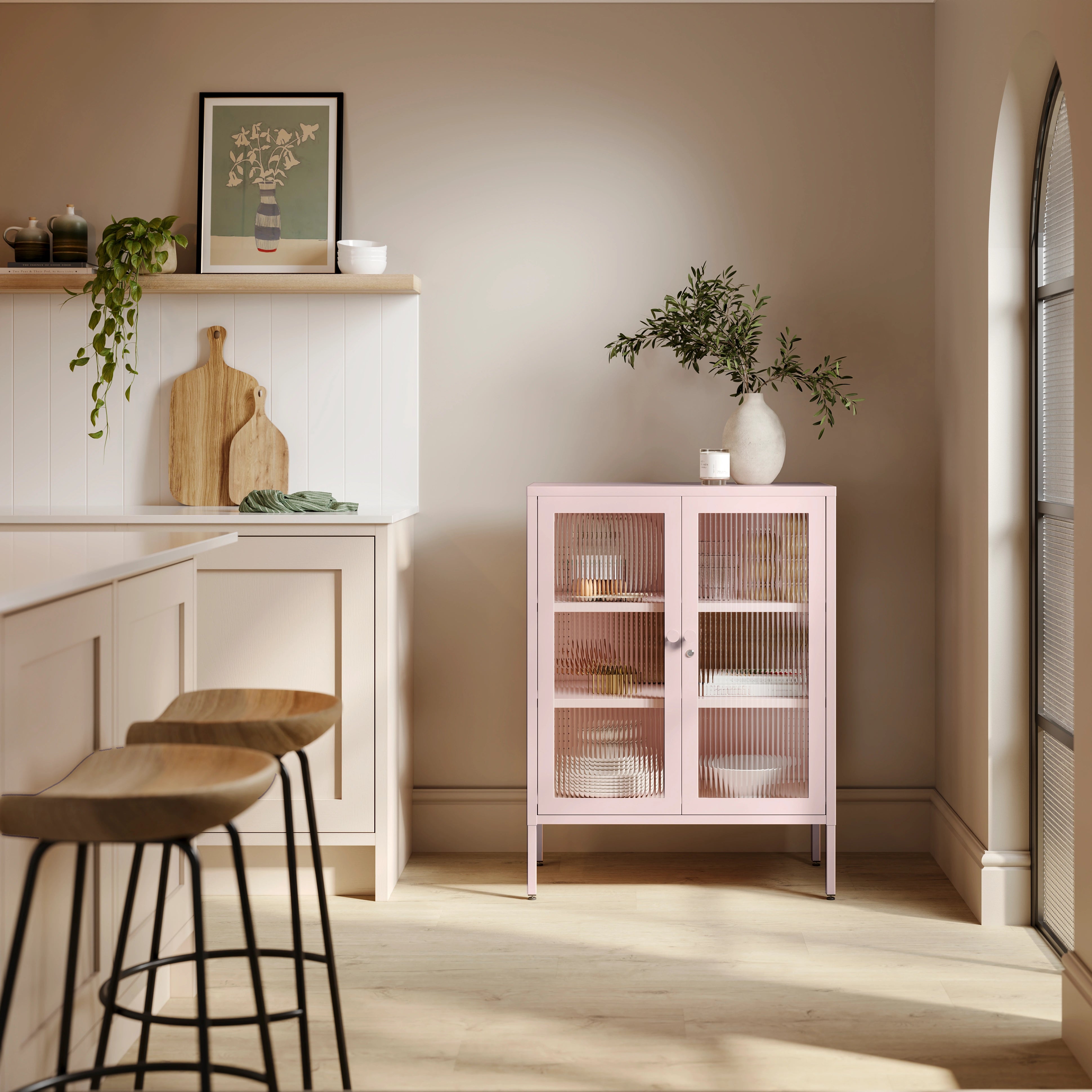 Home » Lockers » The Soho - Fluted Glass Double Door Locker In Light Pink